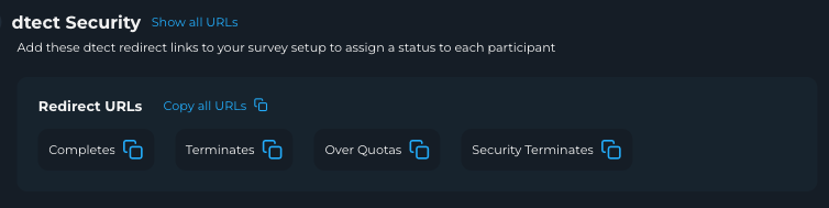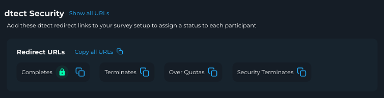 Unique Project Identifier adds an additional layer of redirect security by attaching a unique identifier to your project's complete URL. This ensures only participants completing the correct survey path can be marked as complete, helping to eliminate survey jumpers and fraudulent redirects.